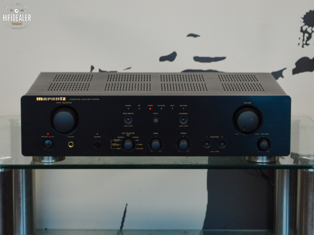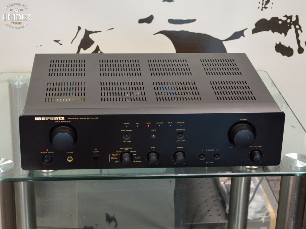 Marantz PM4400 on haluttu, vanhempi integroitu stereovahvistin, joka tunnetaan lämpimästä äänenlaadustaan, vankasta rakenteestaan ja hyvästä hinta-laatusuhteestaan. Se julkaistiin noin vuonna 2003, ja siinä on sisäänrakennettu levysoitinliitäntä.