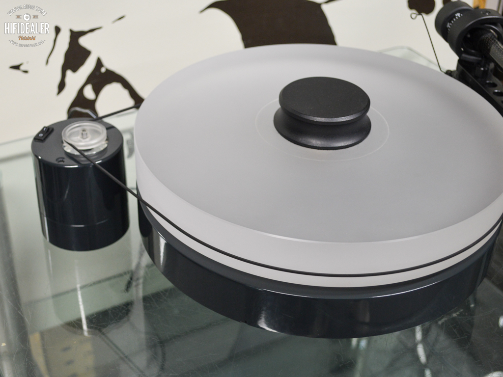 - Äänivarsi: Laitteen mukana toimitetaan 9-tuumainen Pro-Ject 9cc -äänivarsi, joka on valmistettu yksiosaisesta kartiomaisesta hiilikuituputkesta. Tämä tarjoaa suuren jäykkyyden ja minimoi seisovien aaltojen heijastukset. Äänivarressa on myös säädöt VTA:lle (pystysuuntainen neulakulma) ja atsimuutilles.