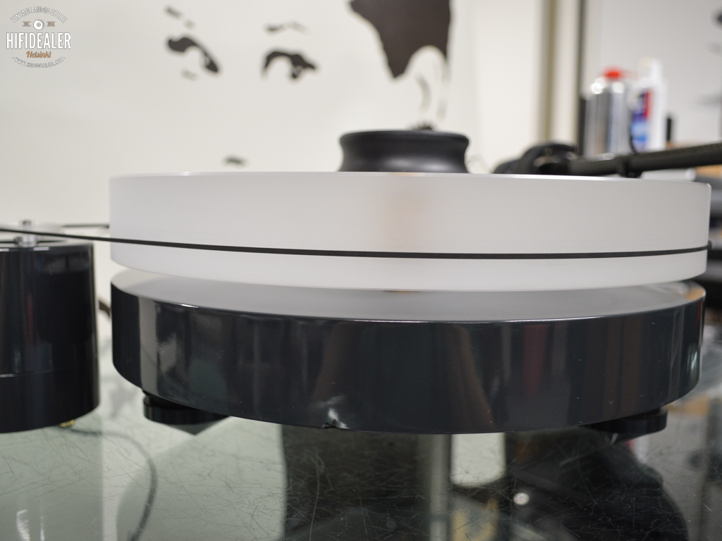- Levylautanen: Painava (3,5 kg), resonanssioptimoitu levylautanen on himmeästä akryylista valmistettu sandwich-rakenne, mikä usein tekee erillisen levymaton tarpeettomaksi.