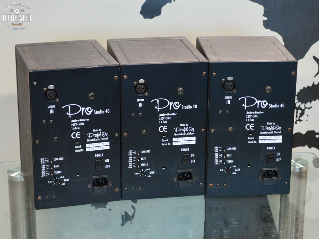 Säädöt: Takapaneelissa on dippikytkimet tai säätimet basson ja diskantin tason hienosäätöön huoneakustiikan mukaan.