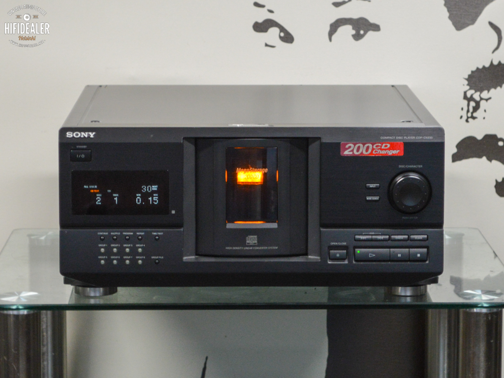 Sony CDP-CX230 on 200:n levyn CD-vaihtaja, joka pystyy toistamaan ja hallitsemaan useita CD-levyjä.